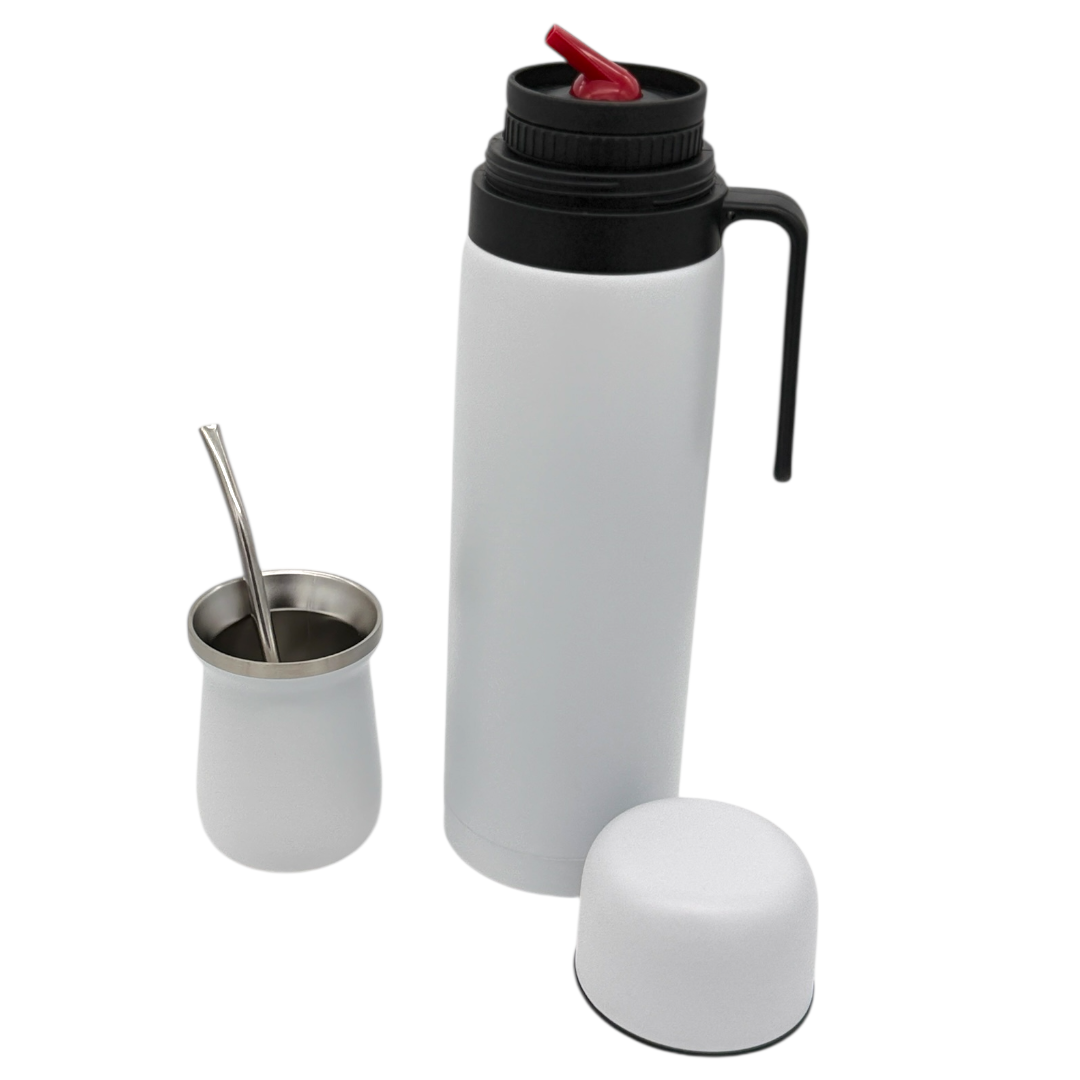 Termo inox con pico cebador. Mantiene el agua entre 5 y 8hs aproximadamente.