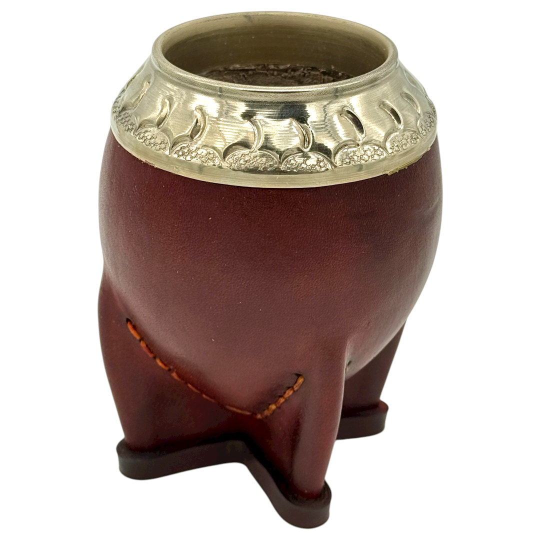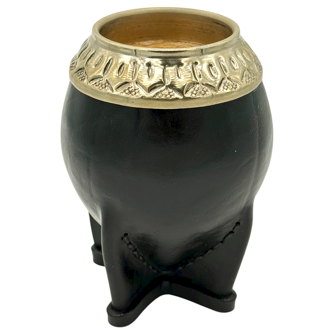 MATEOLI de Calabaza, Virola de Alpaca cincelada a mano, forrado en cuero costura hacia adentro y 4 patas reforzadas para un mejor apoyo.